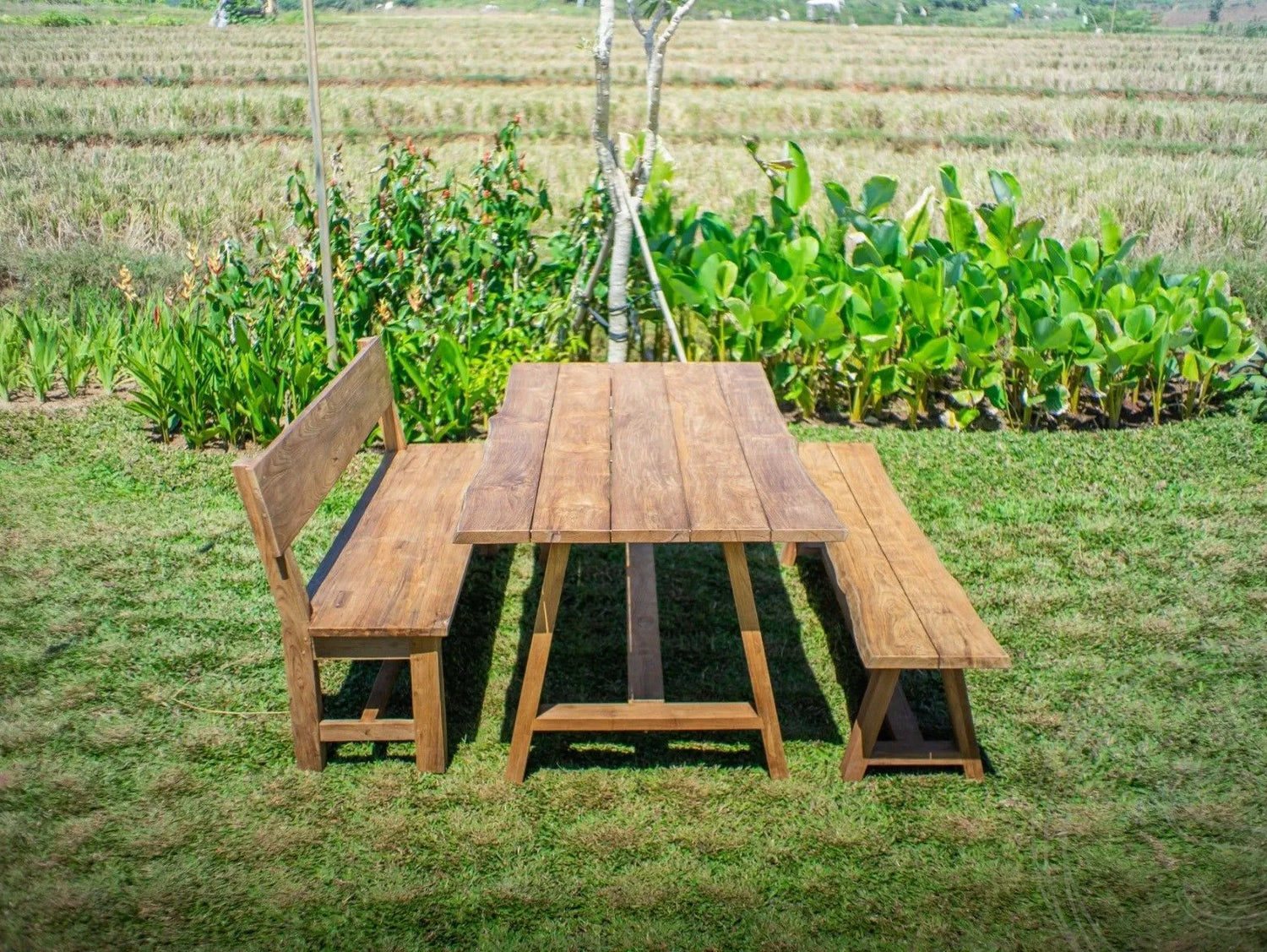 Teak Gartentisch Java 220 x 100 + Teak Gartenbank Java 220 + Teakholz Bank 200 Sandaran