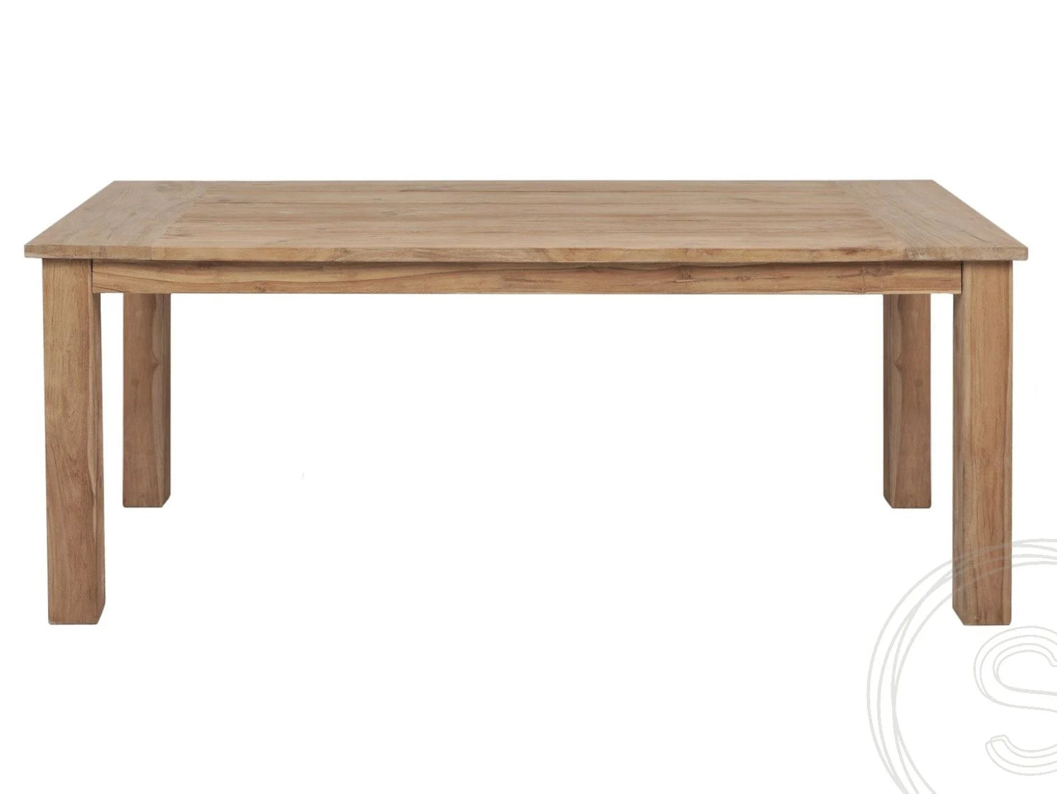 Der Teak Gartentisch mit der rechteckigen Tischplatte ist optimal als Esstisch für eine vierköpfige Familie geeignet. Ergänzt um vier Stühle aus recyceltem Teakholz bzw. zwei Stühle und eine Bank entsteht eine gemütliche Sitzecke im Außenbereich mit einem authentischen Charme. Die Tischplatte wurde aus einzelnen Massivholzleisten zusammengesetzt, die durch eine Querverbindung an den Kopfenden Stabilität erhält. Sie ruht auf vier kompakten Tischbeinen, die ebenfalls aus Recyclingholz hergestellt wurden.