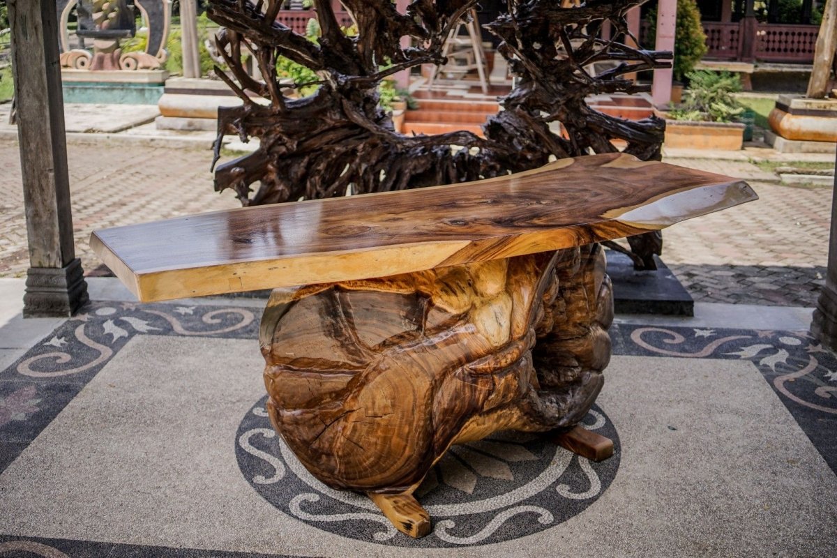 Der Baumstamm Bartisch GIANT 300 cm ist ein markantes Möbelstück für den Innen- oder überdachten Außenbereich. Er besteht aus massivem Teakholz, einer robusten und langlebigen Holzart, die mit ihrer natürlichen Optik überzeugt. Jeder Tisch hat durch die Baumstammform seinen eigenen Charakter, mit schönen Holzmasern und warmer Farbgebung.