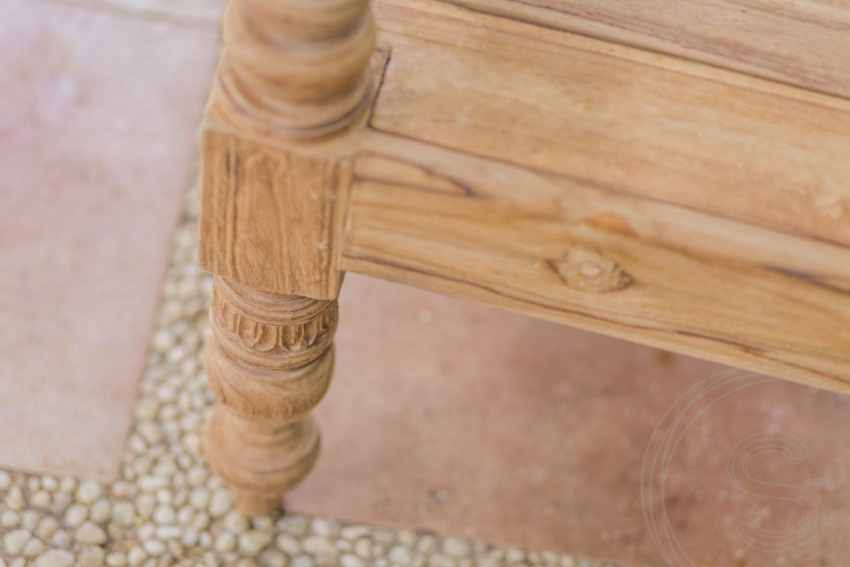 Haben Sie Fragen zur Pflege, zur Behandlung von Teakmöbeln oder zu den Unterschieden in der Oberflächenbearbeitung? Besuchen Sie unseren Blog für ausführliche Tipps und Ratschläge: Mehr über Pflege