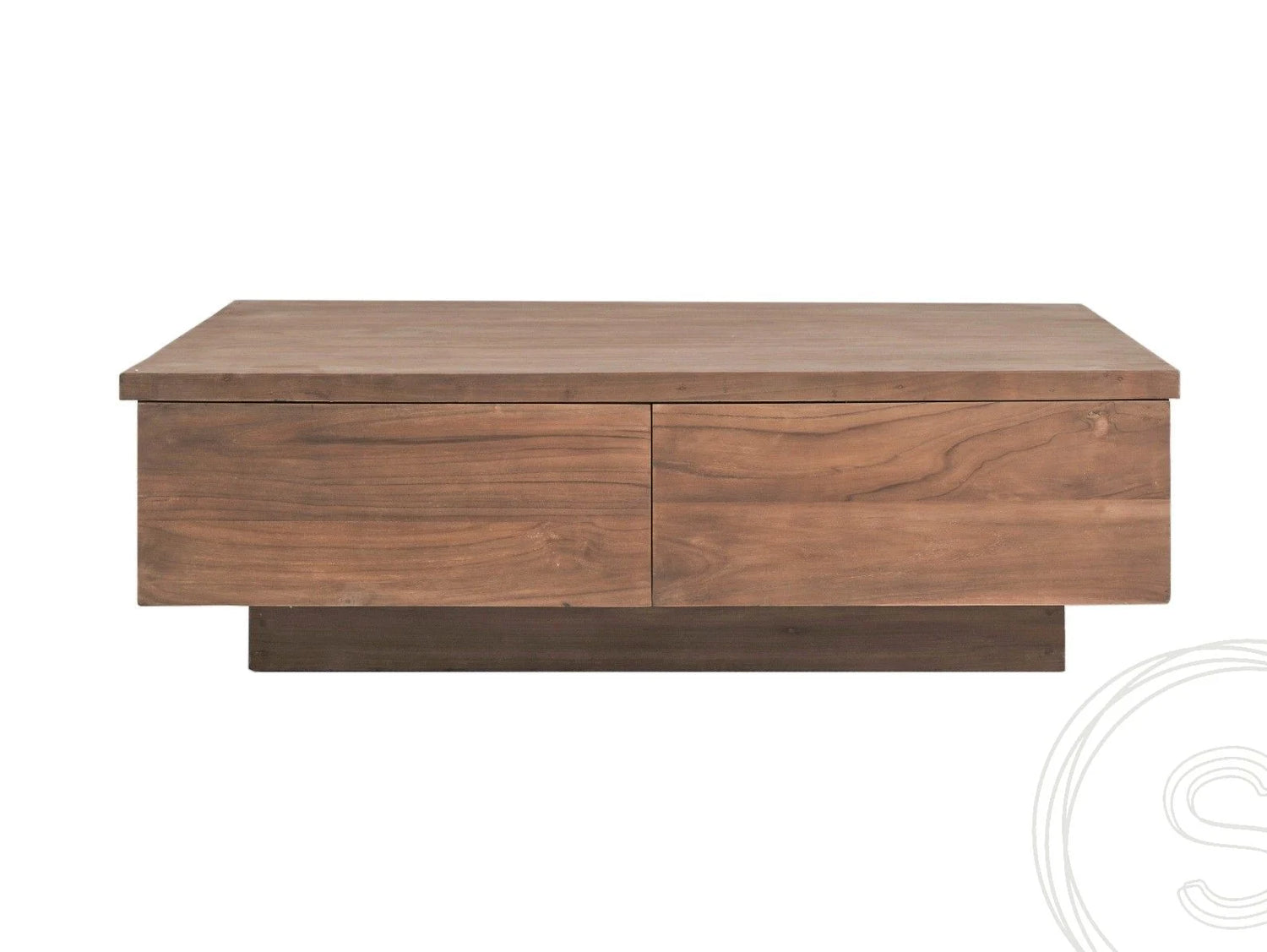 Der Teak Couchtisch Block Smooth steht in zwei Ausführungen zur Auswahl. Das würfelförmige Modell mit den Maßen 80 x 80 cm entfaltet auch in kleinen Wohnzimmern seinen Glanz. Deutlich größer ist der Couchtisch mit den Maßen 120 x 70 cm. Dieses Modell kann in großen Wohnräumen aufmerksamkeitsstark platziert werden. Beide Ausführungen sind mit nebeneinanderliegenden Schubladen ausgestattet, die über eine von außen unsichtbare Griffmulde herausgezogen werden. Bewusst wurde diese Technik gewählt, um das Gesamtbild nicht durch außen liegende Griffe oder Knaufe zu stören.