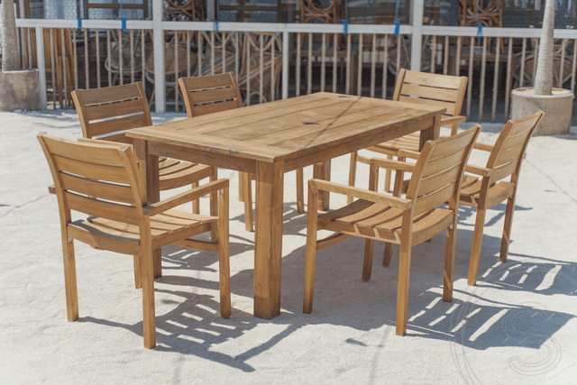 Teak Gartentisch 180 x 90 + 6 Gartenstühle Stacking