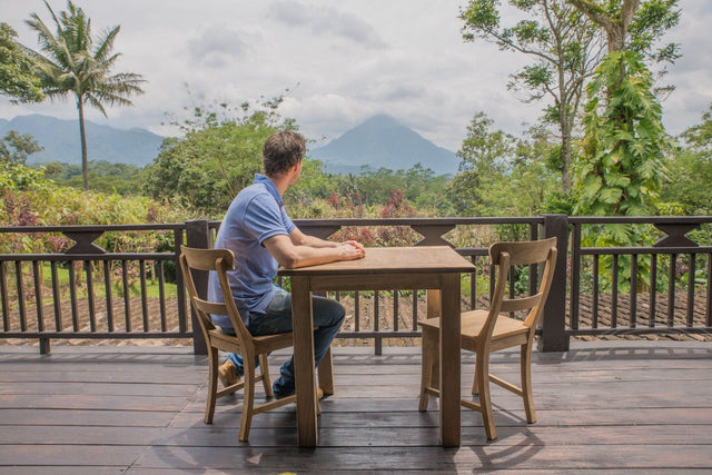 Teakholz ist pflegeleicht. Regelmäßiges Reinigen mit einem feuchten Tuch und einer milden oder grünen Seifenlösung hält das Holz in gutem Zustand. Bei Teakholz-Gartentischen empfehlen wir mindestens 1-2 Mal im Jahr eine gründliche Reinigung, um Ablagerungen wie Algen oder Moos vorzubeugen. Bei Tischen mit Schraubbeinen jährlich prüfen, ob alles fest sitzt.
