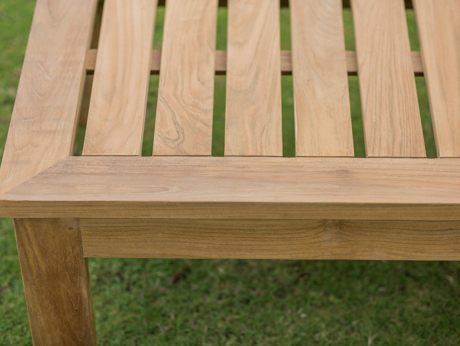 Teakholz ist pflegeleicht. Regelmäßiges Reinigen mit einem feuchten Tuch und einer milden oder grünen Seifenlösung hält das Holz in gutem Zustand. Bei Teakholz-Gartentischen empfehlen wir mindestens 1-2 Mal im Jahr eine gründliche Reinigung, um Ablagerungen wie Algen oder Moos vorzubeugen. Bei Tischen mit Schraubbeinen jährlich prüfen, ob alles fest sitzt.