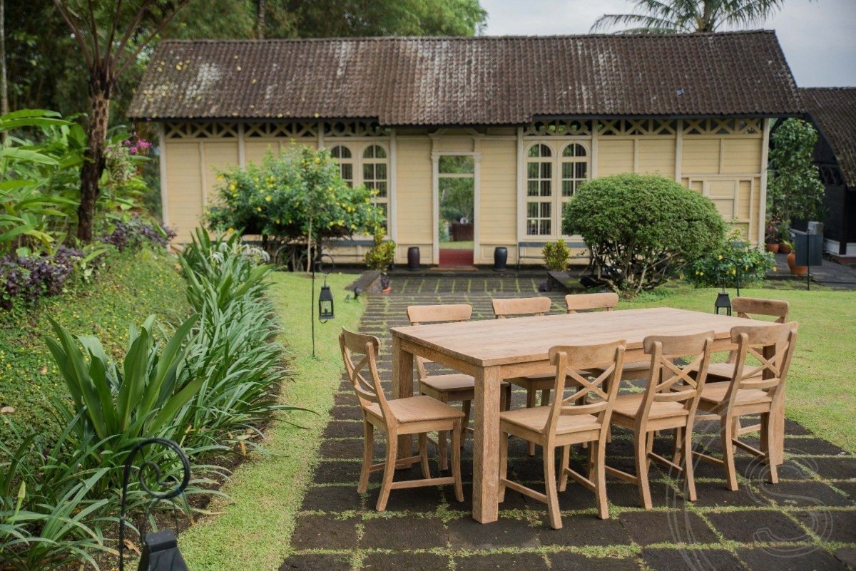 Suchen Sie einen stabilen und stilvollen Esstisch mit warmer Ausstrahlung? Unser Teakholz-Tisch ist eine langlebige und elegante Lösung für Ihren Essbereich.