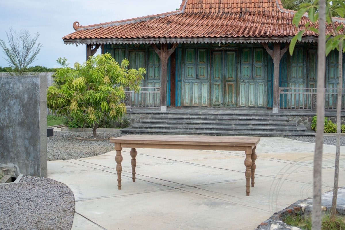 Tisch aus Teakholz mit 220x90cm und gedrehten Beinen